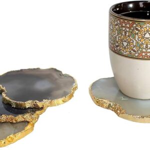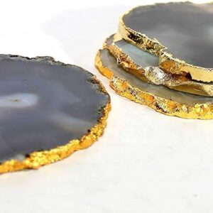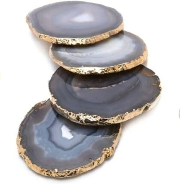 Edges of this set of coasters are plated with pure brass (not gold polish) for beauty and longevity. We also have set of Agate Coasters, where edges are naturally rough as found in Agate stones. Please search “eSplanade Agate” on Amazon to see our range of 10+ Agate coasters.
